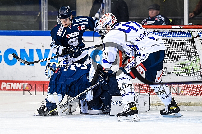 Torwart Tomi Karhunen (Nr.33 - Straubing Tigers) vor Alexander Karachun (Nr.47 - Schwenninger Wild Wings)