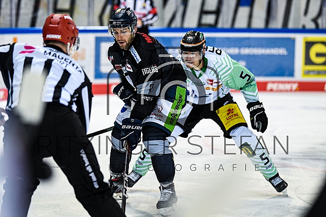 Taylor Leier (Nr.7 - Straubing Tigers) vor Rene Schoofs (Nr.5 - Bietigheim Steelers)