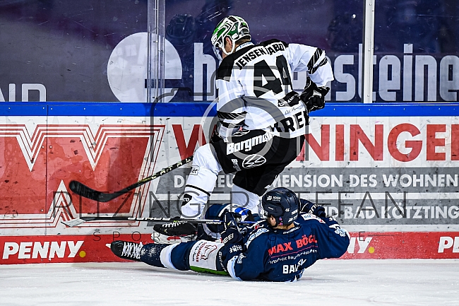 Chase Balisy (Nr.16 - Straubing Tigers) am Boden vor Jesper Jensen Aabo (Nr.44 - Krefeld Pinguine)