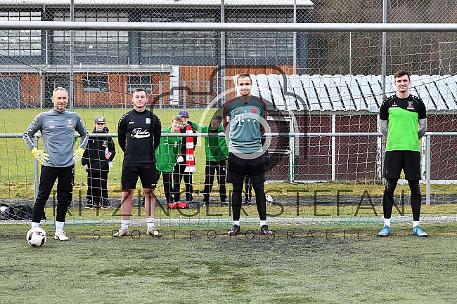 Torwart-Trainer Manfred Winter (Spvgg GW Deggendorf), Torwart Lukas Groll (Spvgg GW Deggendorf), Torwart Christian Früchtl (FC Bayern München) und Torwart Manuel Sommer (Spvgg GW Deggendorf)