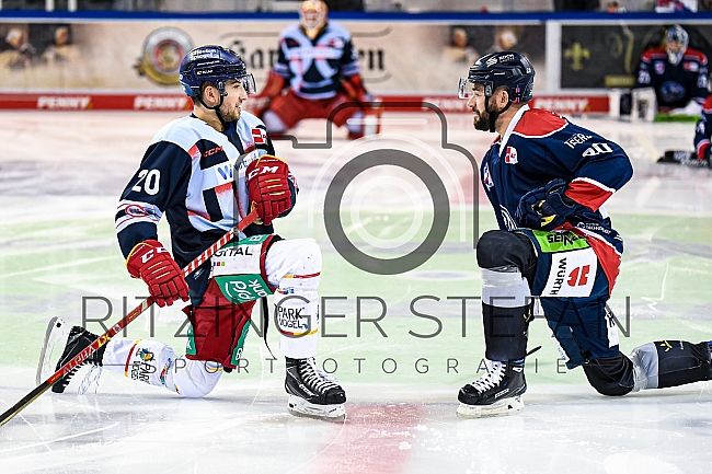 Tobias Eder (Nr.20 - Duesseldorfer EG) und Andreas Eder (Nr.20 - Straubing Tigers) beim Warmup