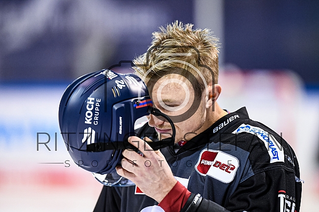 Marcel Brandt (Nr.92 - Straubing Tigers) grinst in seinen Helm