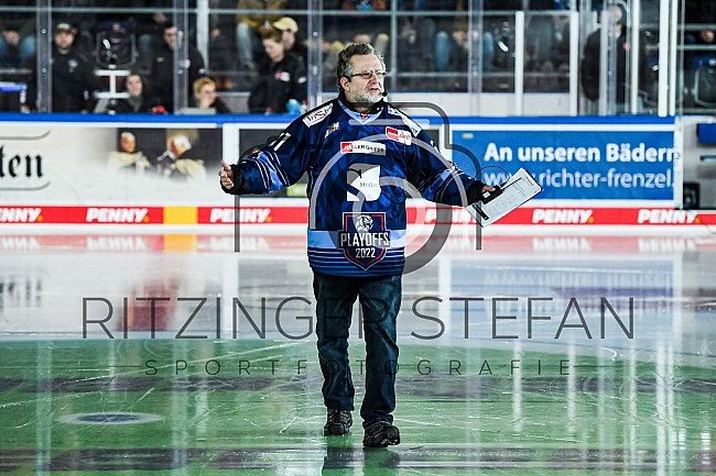 Stadionsprecher Peter Schnettler (Straubing Tigers) begrüßt die Zuschauer