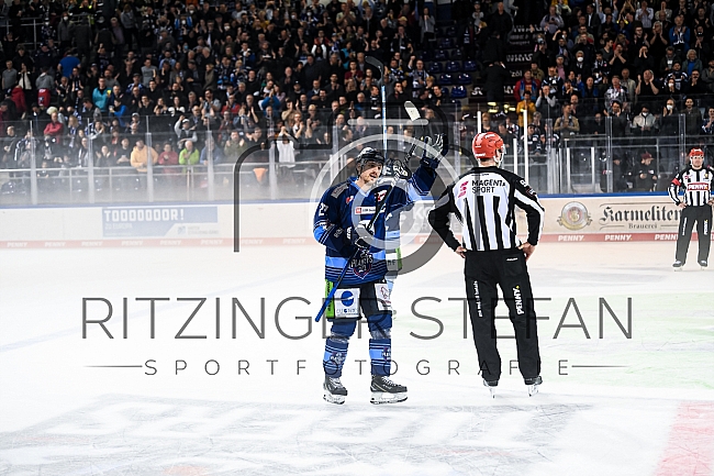 Sandro Schönberger (27-Straubing Tigers) dankt den Fans