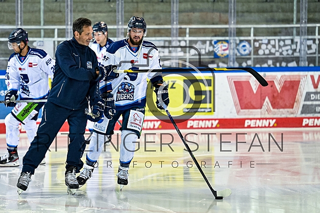 Co-Trainer Rob Leask (Straubing Tigers) und TIGO Maskottchen (77-Straubing Tigers)