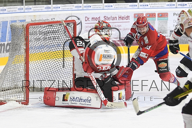 Beschreibung: Im Bild Torwart Jochen Vollmer (Nr.29-ECDC Memmingen Indians), Chase Schaber (Nr.19-Deggendorfer SC).