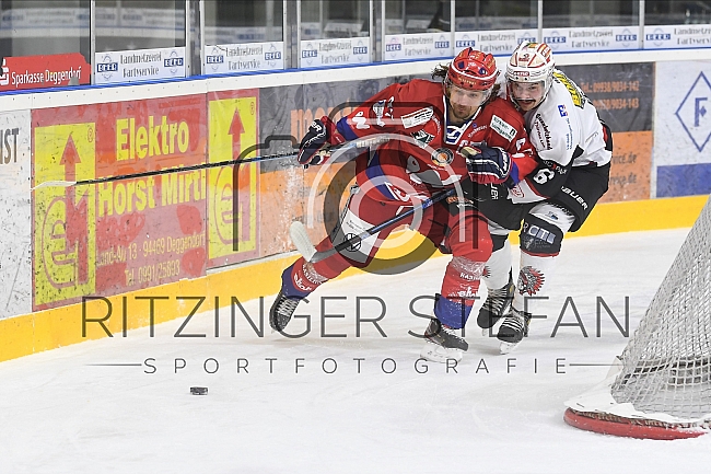 Beschreibung: Im Bild Kapitän Rene Röthke (Nr.97-Deggendorfer SC), Philipp De Paly (Nr.6-ECDC Memmingen Indians).