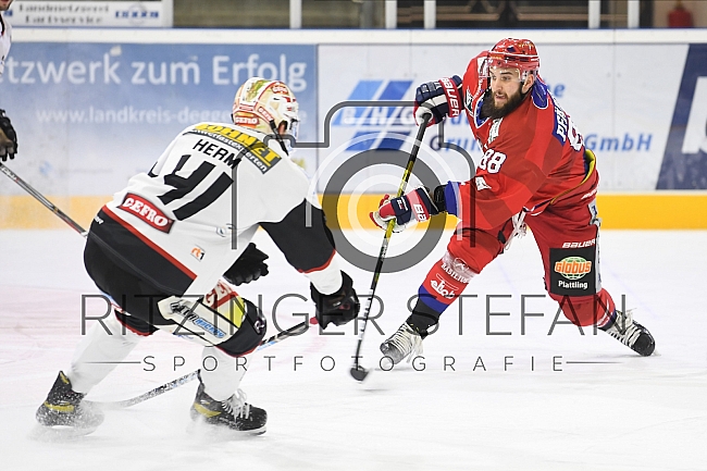 Beschreibung: Im Bild Jannik Herm (Nr.41-ECDC Memmingen Indians), Marcel Pfänder (Nr.88-Deggendorfer SC).