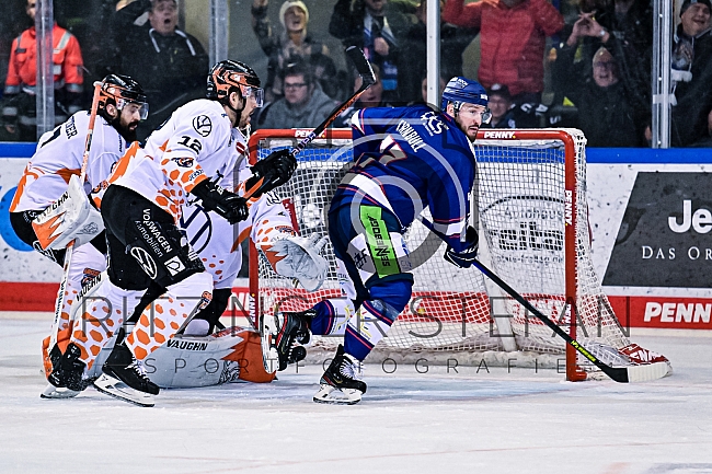 Travis Turnbull (77-Straubing Tigers) vor Armin Wurm (12-Grizzlys Wolfsburg)
