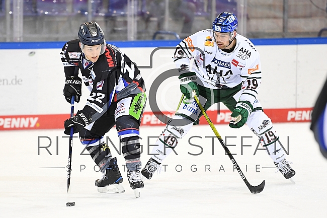Mike Connolly (Nr.22 - Straubing Tigers) gegen Drew LeBlanc (Nr.19 - Augsburger Panther)