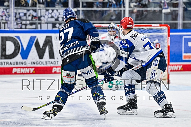 Sandro Schoenberger (27-Straubing Tigers) gegen Daniel Pfaffengut (77 - Schwenninger Wild Wings)