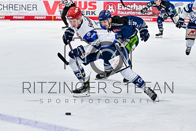 Philip Feist (9 - Schwenninger Wild Wings) vor Tim Brunnhuber (19-Straubing Tigers)