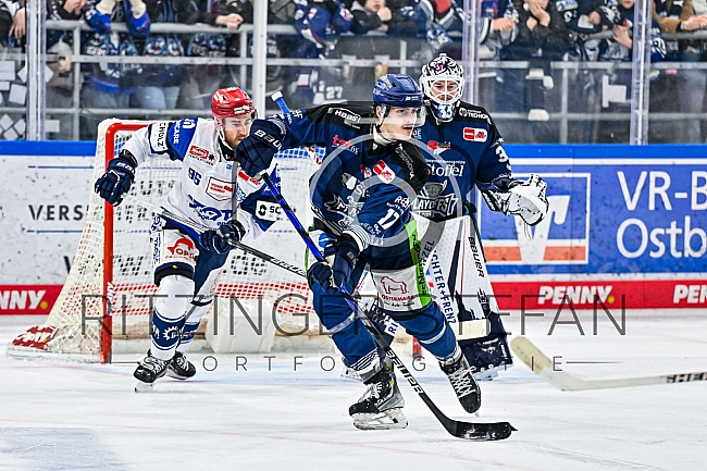 Adrian Klein (17-Straubing Tigers) vor Tyson Spink (96 - Schwenninger Wild Wings)
