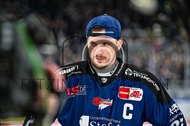 Sandro Schoenberger (27-Straubing Tigers) beim Interview von Magenta Sport