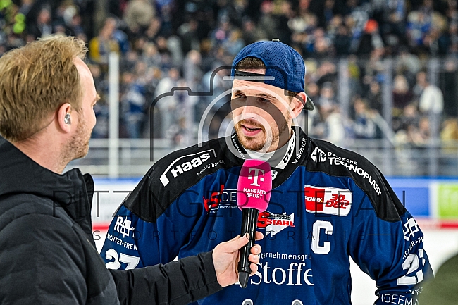Sandro Schoenberger (27-Straubing Tigers) beim Interview von Magenta Sport