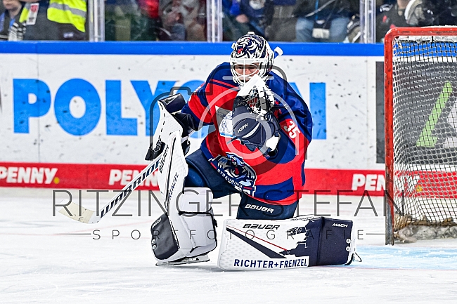 Torwart Hunter Miska (35-Straubing Tigers) beim Warmup
