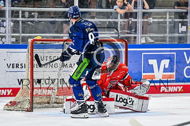 Joshua Samanski (8-Straubing Tigers) trifft zum 1-2 gegen Torwart Filip Novotny (35-Mountfield HK)