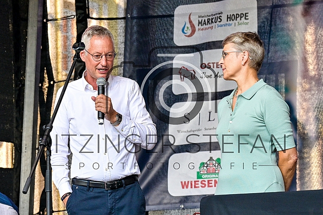 Oberbürgermeistzer Markus Pannermayr, CEO Gaby Sennebogen (Straubing Tigers)