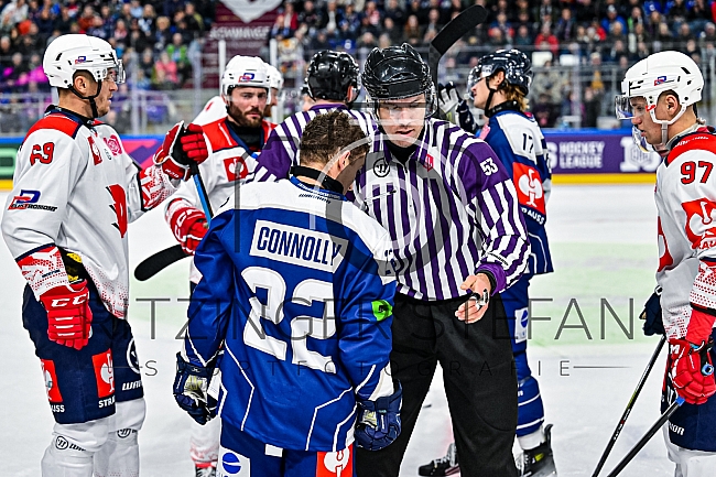 Linesmen Joshua Roemer (DEL) und #22 Mike Connolly (Straubing Tigers)
