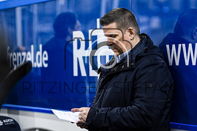Chef-Trainer Tom Pokel (Straubing Tigers) beim Notizen schreiben