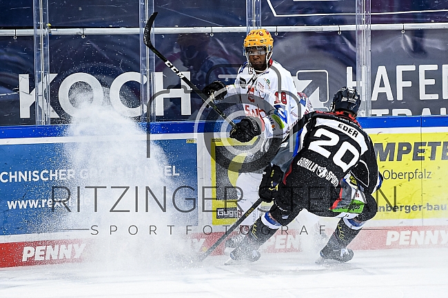 Maxime Fortunus (Nr.18 - Fischtown Pinguins) und Andreas Eder (Nr.20 - Straubing Tigers)