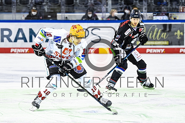 Filip Reisnecker (Nr.10 - Fischtown Pinguins) vor Marco Bassler (Nr.44 - Straubing Tigers)