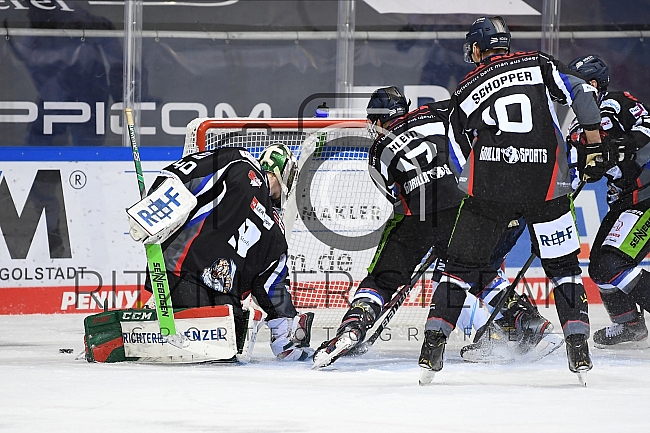 Beschreibung: Im Bild Torwart Mat Robson (Nr.40 - Straubing Tigers), Adrian Klein (Nr.17 - Straubing Tigers), Benedikt Schopper (Nr.10 - Straubing Tigers).