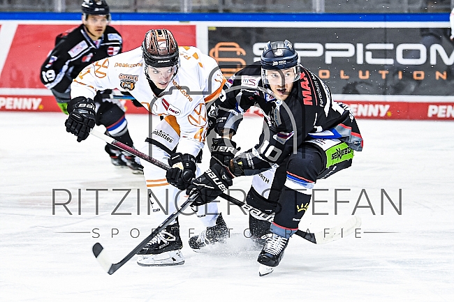 Benedikt Schopper (Nr.10 - Straubing Tigers) im Zweikampf mit Steven Raabe (Nr.41 - Grizzlys Wolfsburg)