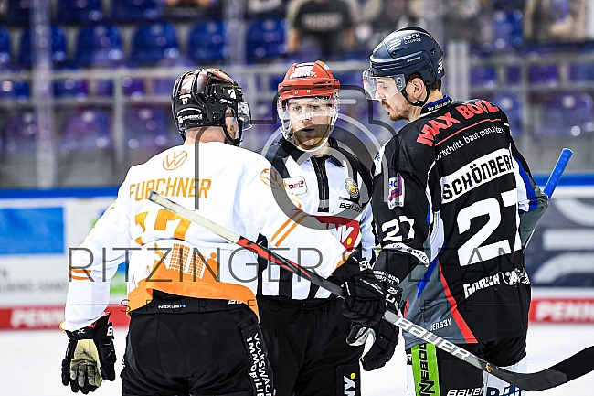 Sebastian Furchner (Nr.17 - Grizzlys Wolfsburg) und Sandro Schönberger (Nr.27 - Straubing Tigers) nach dem Spiel