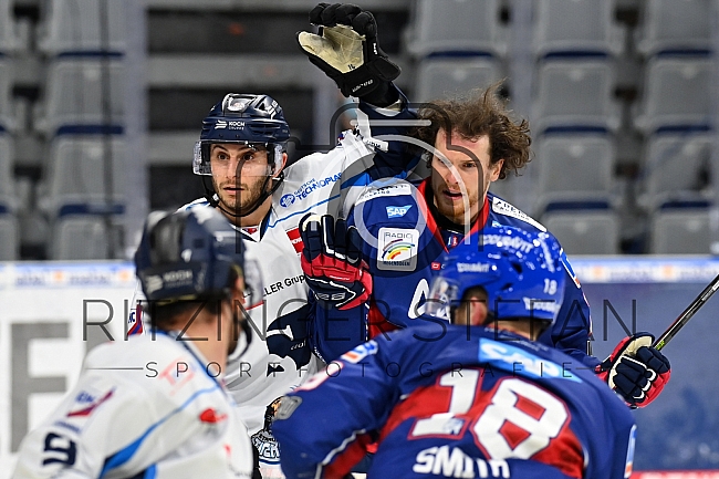 Chase Balisy (Nr.16 - Straubing Tigers) im Zweikampf mit Brendan Shinnimin (Nr.24 - Adler Mannheim)