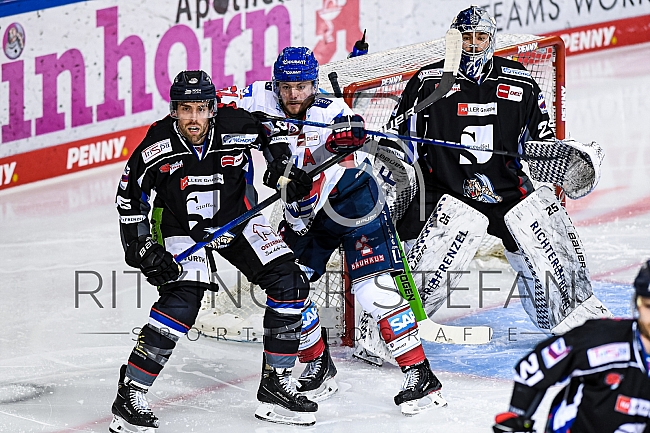 Tommi Huhtala (Nr.61 - Adler Mannheim) im Zweikampf mit Brandon Gormley (Nr.36 - Straubing Tigers)