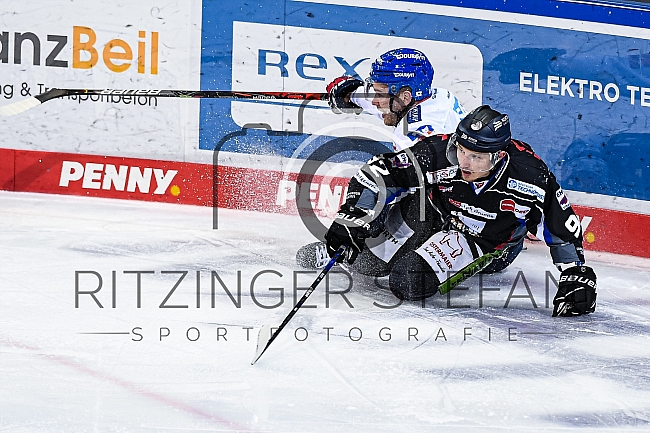 Marcel Brandt (Nr.92 - Straubing Tigers) und Mark Katic (Nr.95 - Adler Mannheim) am Boden