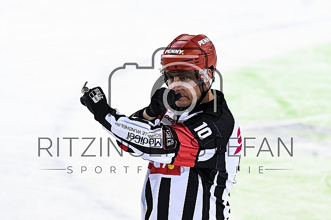 Schiedsrichter Gordon Schukies (DEL) zeigt energisch eine Strafaew an