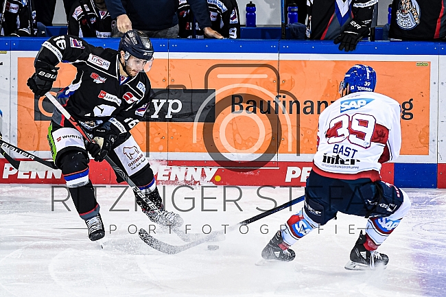 Chase Balisy (Nr.16 - Straubing Tigers) gegen Jason Bast (Nr.39 - Adler Mannheim)