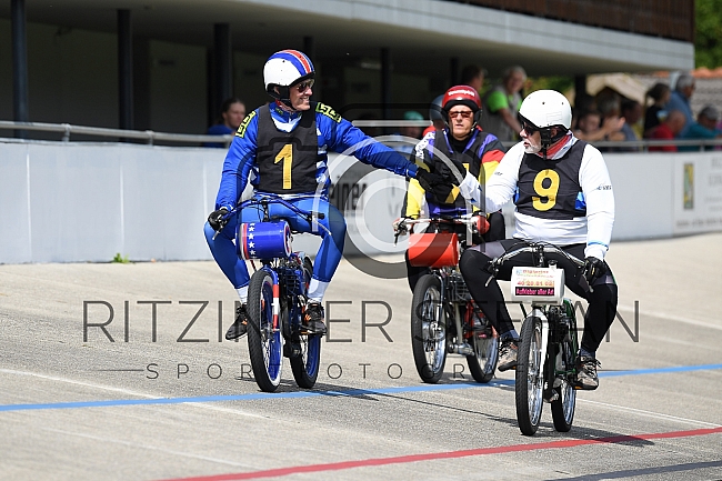 Schrittmacher Peter Bäuerlein (Verein Sportplatz Nürnberg) gratuliert Schrittmacher Christian Ertel (RSV Edelweiß Oberhausen) zum Sieg