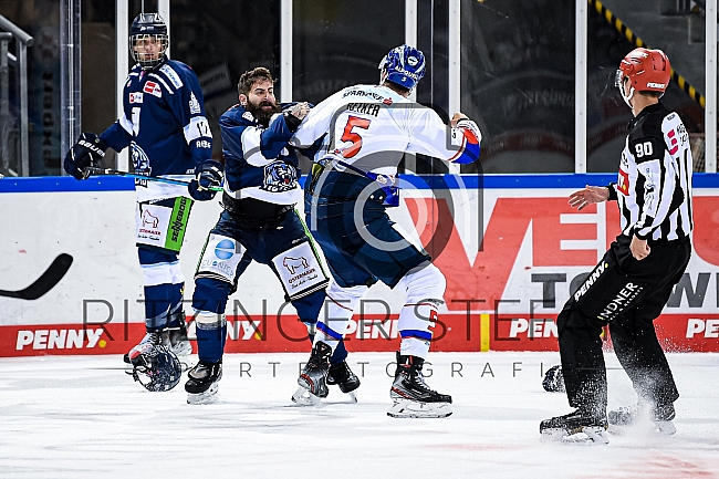 Cody Lampl (Nr.32 - Straubing Tigers) im Faustkampf gegen Ben Betker (Nr.5 - HC TIWAG Innsbruck)