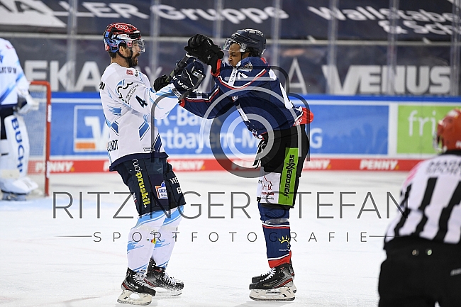 Beschreibung: Im Bild Morgan Ellis (Nr.4 - ERC Ingolstadt), Sena Acolatse (Nr.62 - Straubing Tigers).