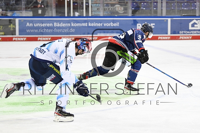 Beschreibung: Im Bild Nick Latta (Nr.39 - Straubing Tigers), Morgan Ellis (Nr.4 - ERC Ingolstadt).