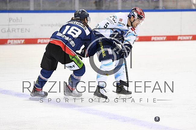 Beschreibung: Im Bild Jeremy Williams (Nr.18 - Straubing Tigers), Fabio Wagner (Nr.5 - ERC Ingolstadt).