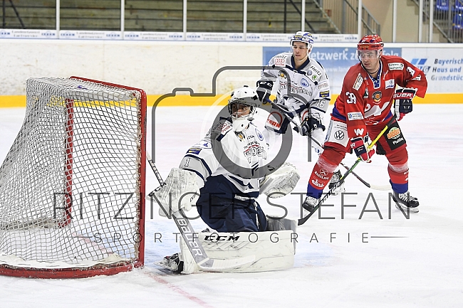 Beschreibung: Im Bild Torwart Sebastian Pfeuffer (Nr.1-SC Riessersee), Thomas Greilinger (Nr.39-Deggendorfer SC).